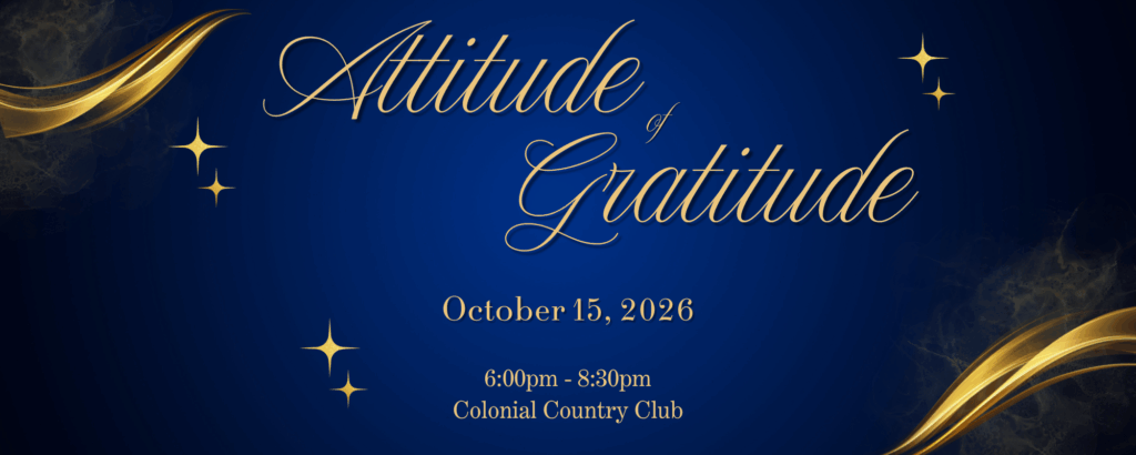 Mark your calendars to join us on Thursday, October 15, 2026 for our annual Attitude of Gratitude event at Colonial Country Club. Follow us on social media for event updates.